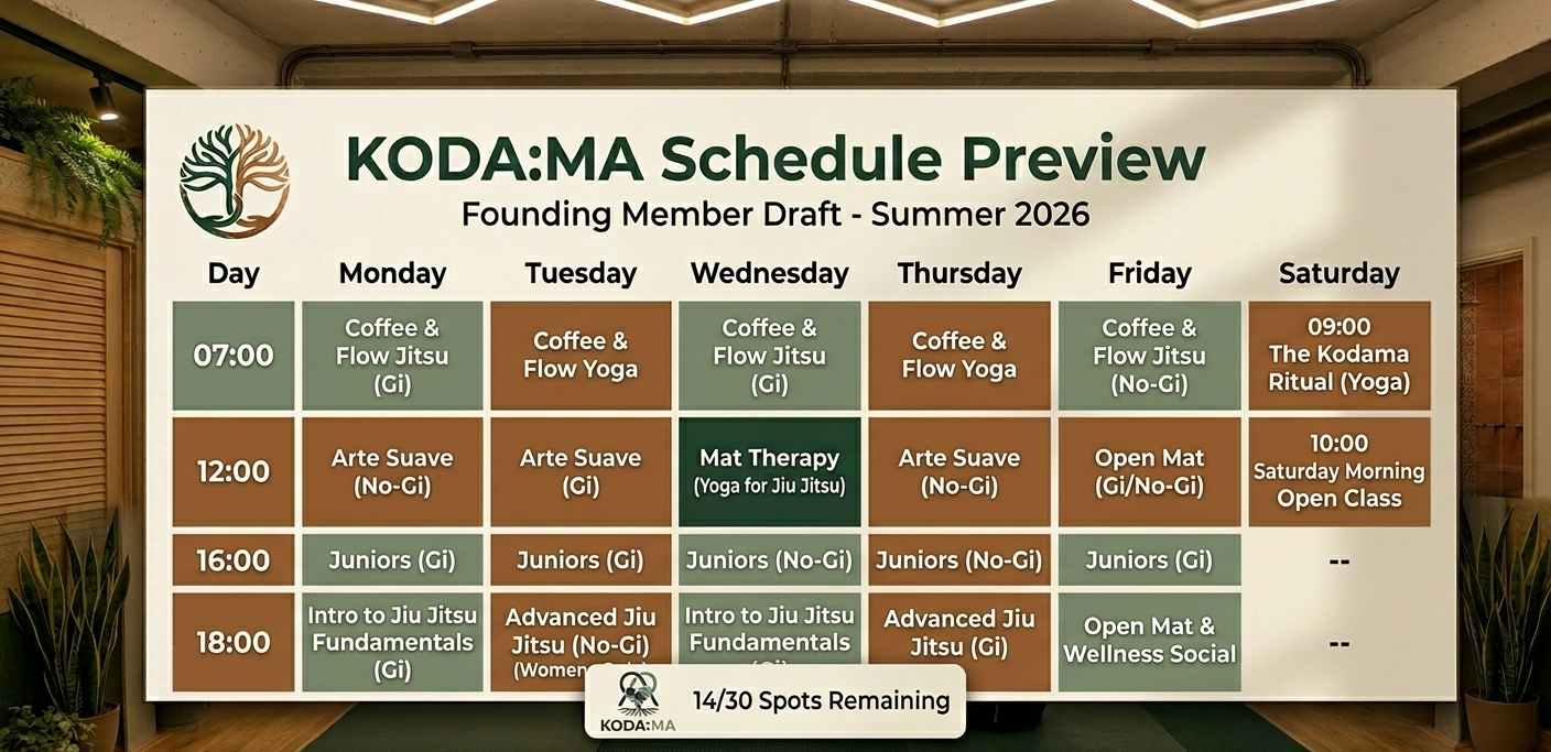 “"I built KODA:MA because I wanted a place where the art of Jiu-Jitsu met the science of wellness. I wanted a gym that felt like a sanctuary, a home, a space to explore the limits of my potential as a coach and practitioner of the Gentle Art."
